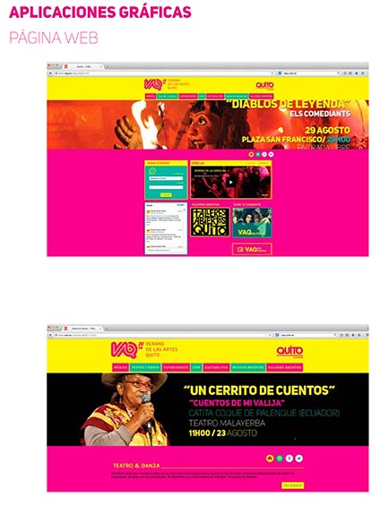 Desarrollo de marca para el Verano de las Artes Quito. Incluye el sistema gráfico y aplicaciones del logotipo en distintos formatos.